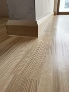 Zamontowaliśmy cokoły jesionowe o ciekawym wzorze i wysokości 8 cm.